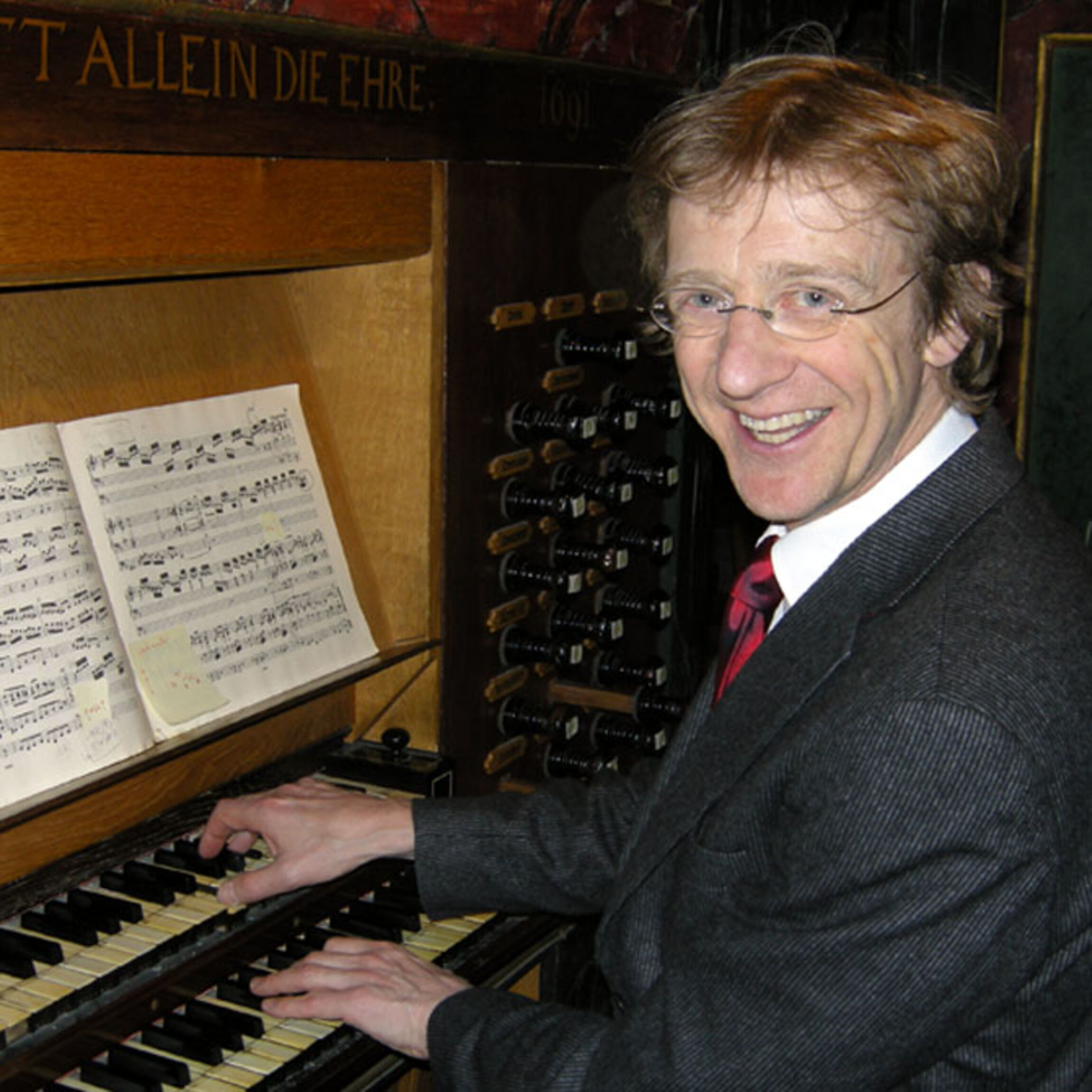 ist der Organist der Marktkirche mit ihren drei Orgeln – ansonsten bedient er mit Leidenschaft die Klaviertasten, um den Kinder- und Jugendchor zu begleiten.